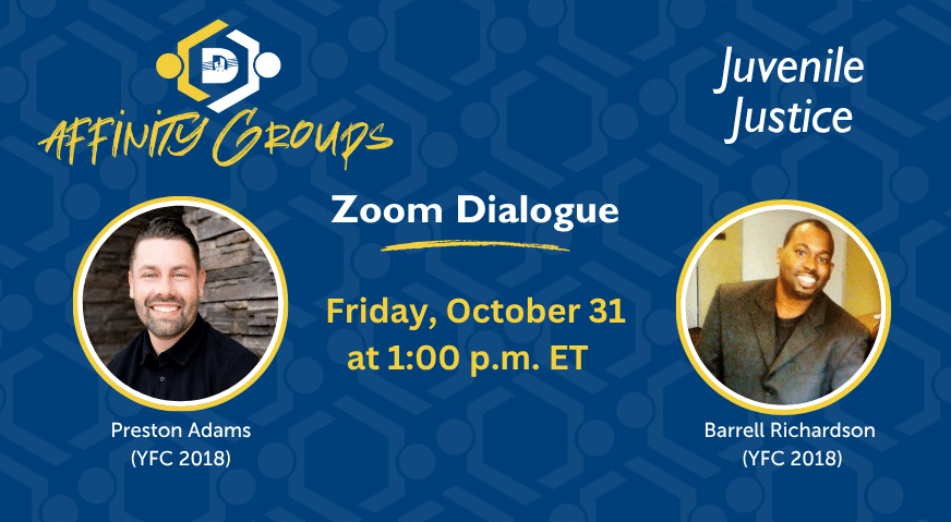 Join us virtually for a national conversation with DVULI alumni moderators and experts in the field—Preston Adams (YFC 2018) and Barrell Richardson (YFC 2018) —as we discuss, pray, and share best practices to better serving youth who are at risk of incarceration and recidivism.